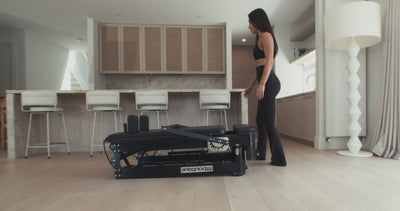 Embrace the fusion of style and mobility with the Onyx Fold Reformer. Crafted for those who value both design and practicality, this reformer is foldable and includes wheels for easy transportation. Its robust frame and elegant finishes ensure a luxurious and effective workout.